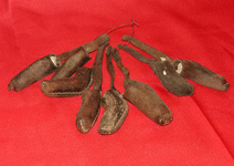 Lo utilizaban antiguamente los segadores para no cortarse los dedos, se los colocaban en la mano contraria a la que llevaban la hoz. El material que se utilizaba para hacerlos era, generalmente,el cuero. |