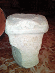 (Izquierda)Piedra de mármol labrado del siglo ll de la época romana donde depositaban las cenizas de los difuntos